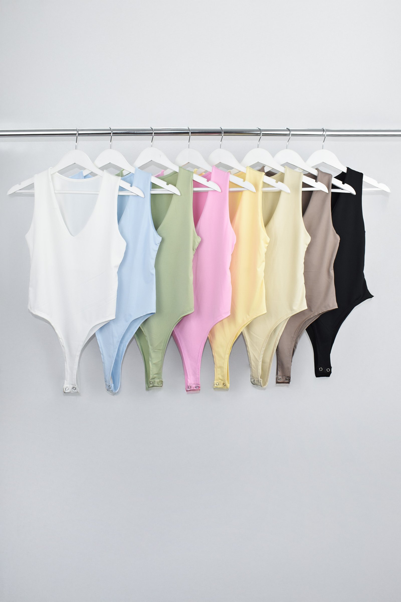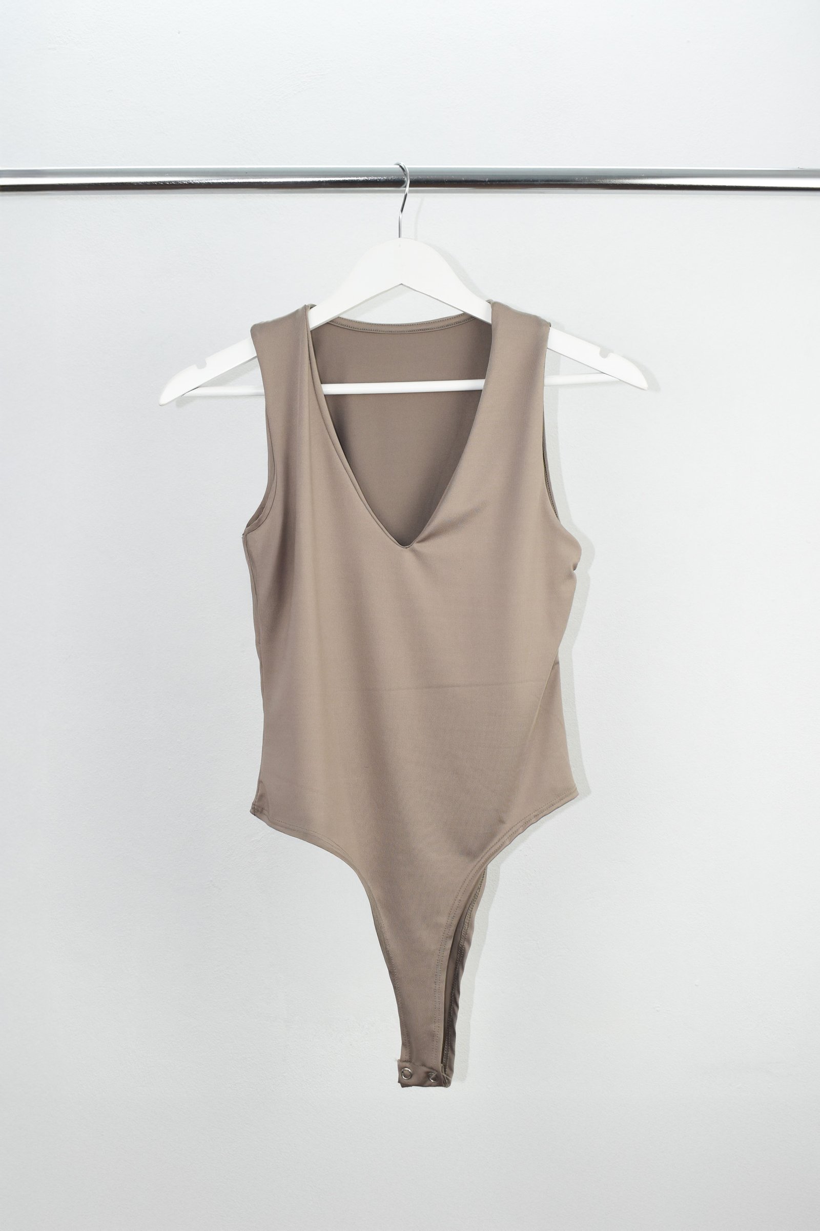 Detalle: Body escote V y delantero con vista embolsada y entrepiernas con botones a presión.