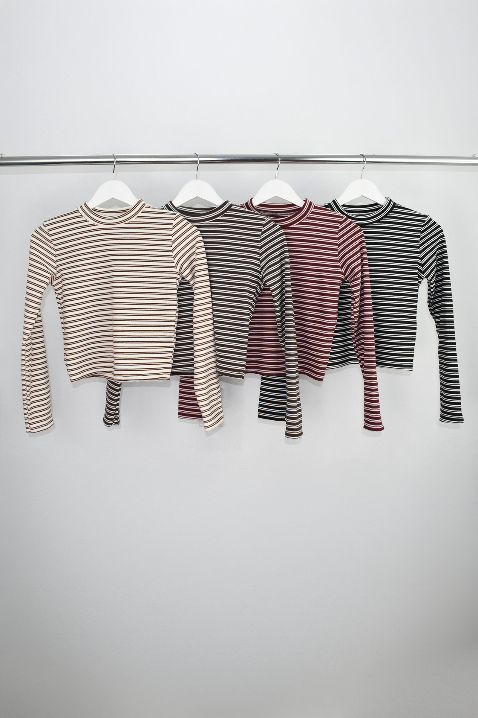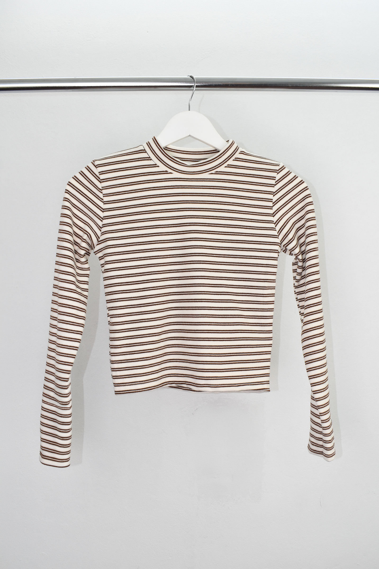 Talle: M Calidad: DARLON RAYADO Descripción: Remera con cuello media polera y mangas largas.