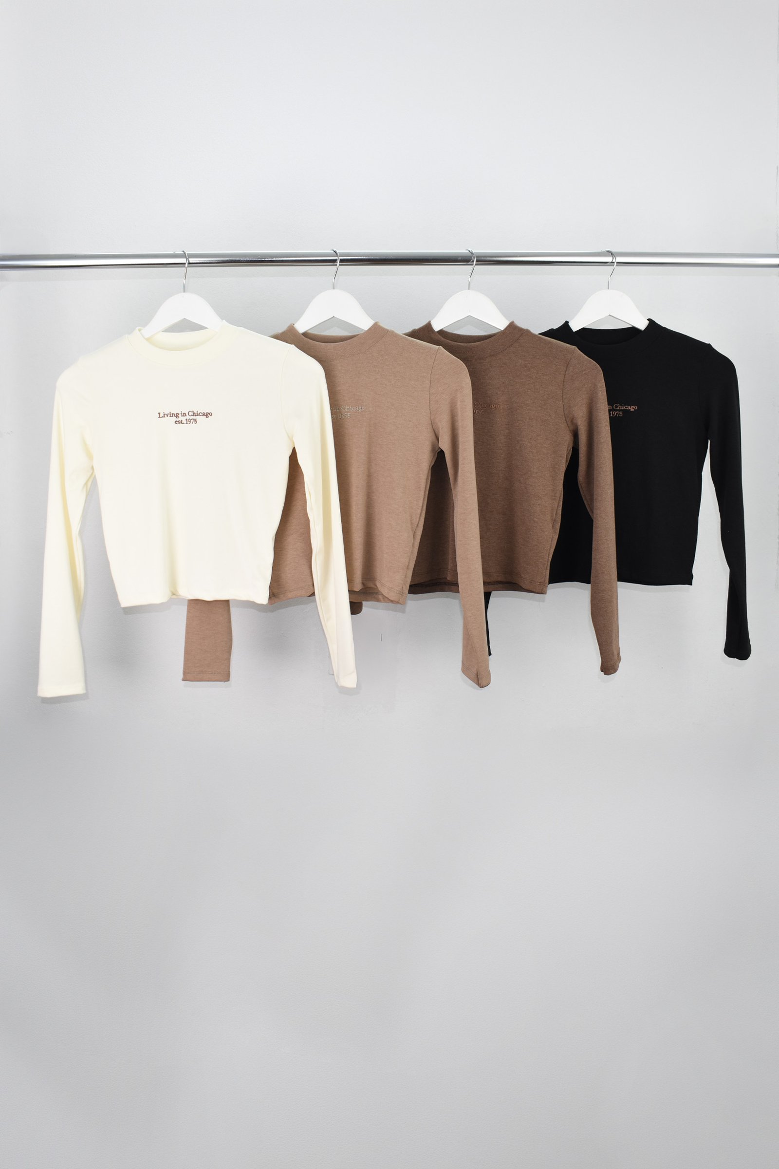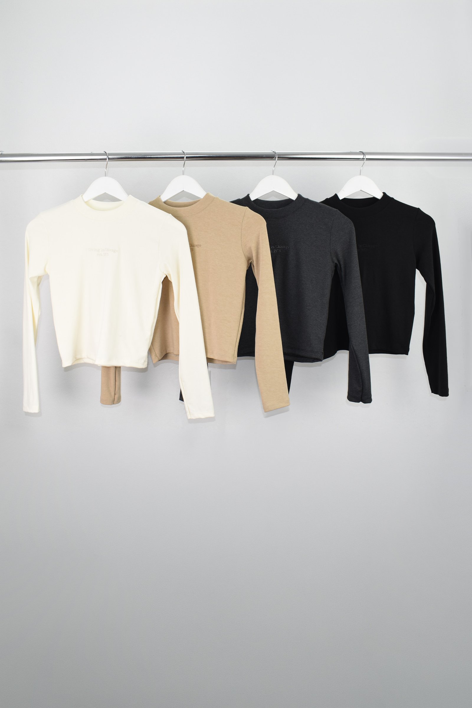 Talle: M Calidad: MELVIN Descripción: Remera con cuello media polera y mangas largas.