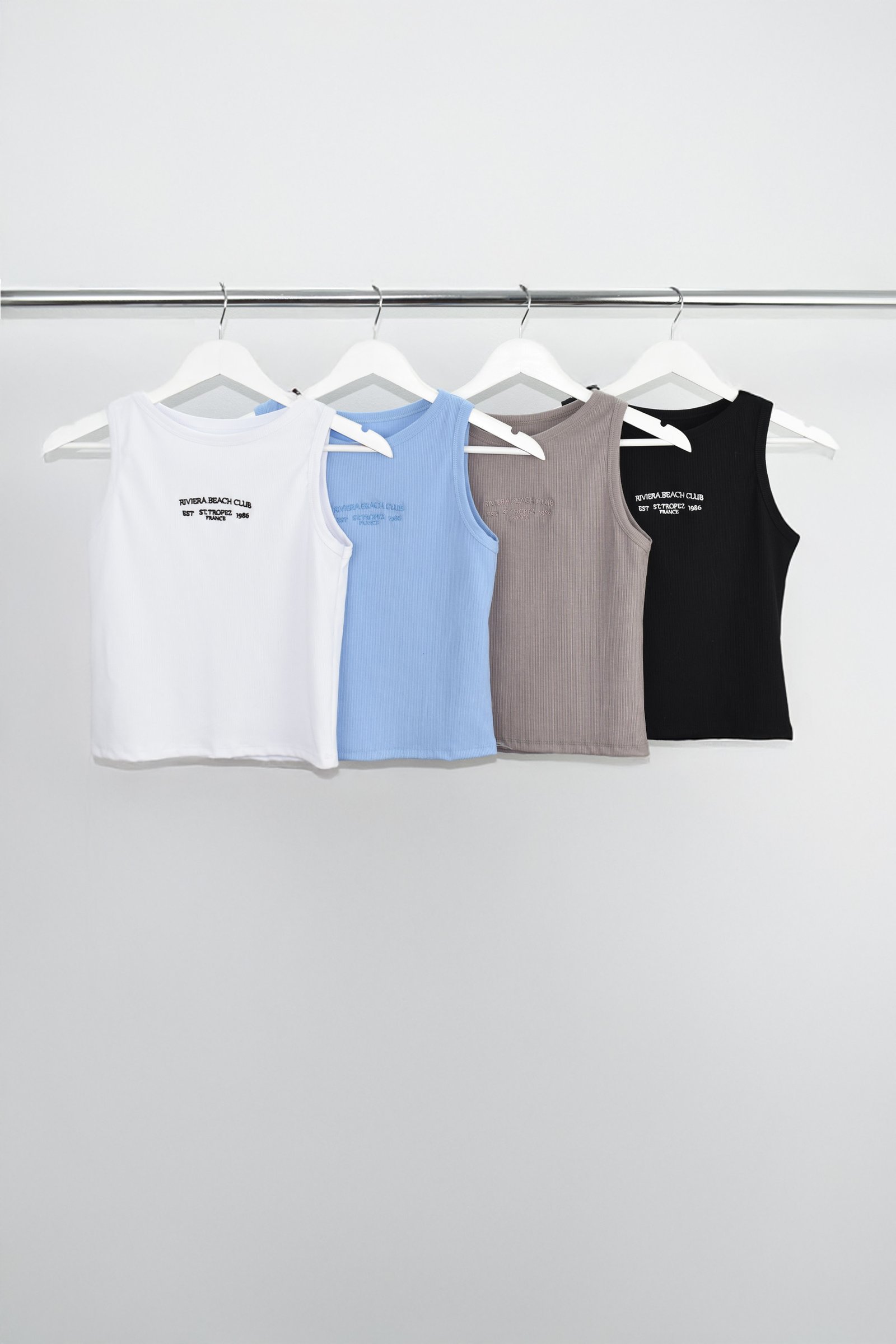 Descripcion: Musculosa escote redondo con guia en el cuello y sisas