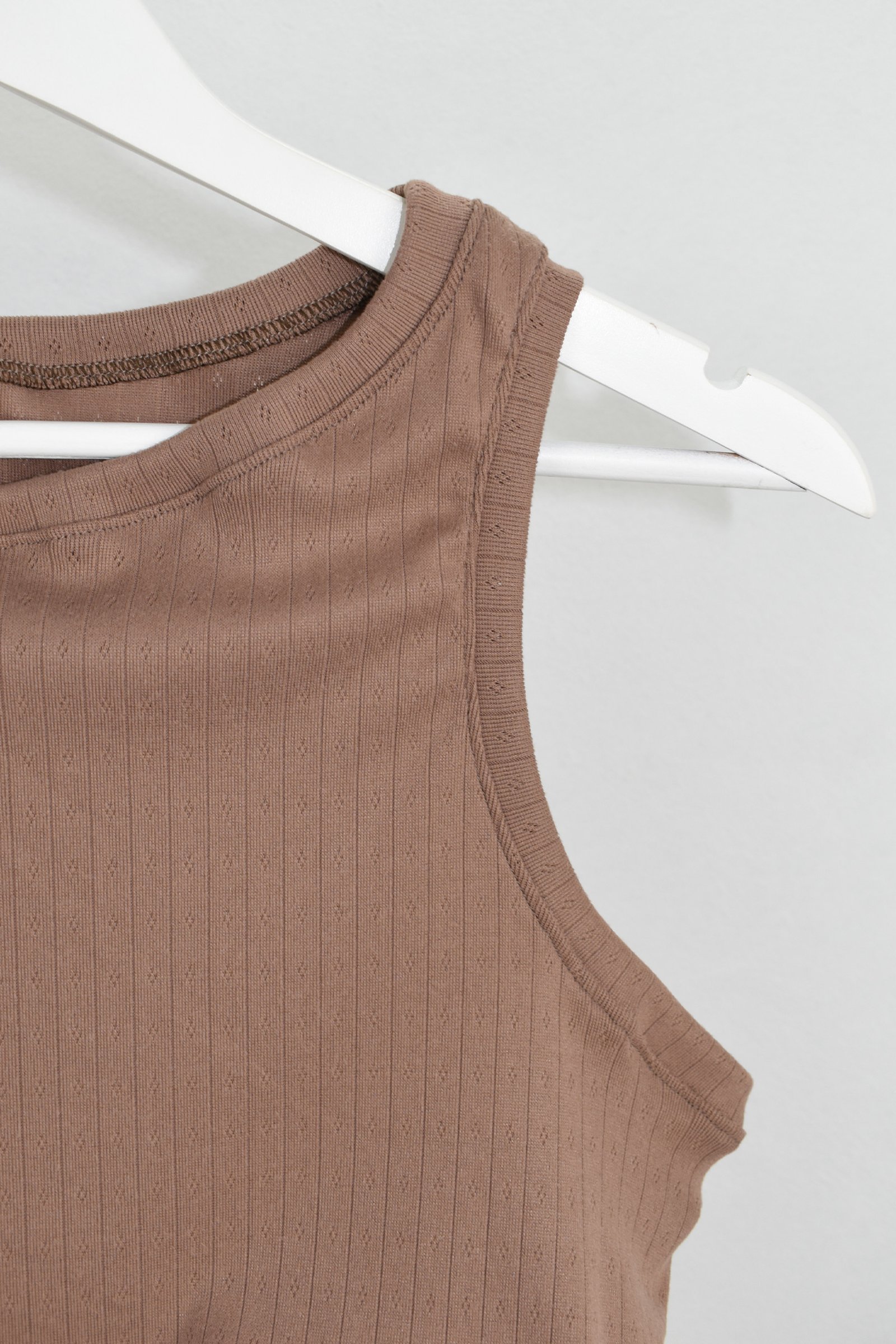 Descripción: Musculosa escote redondo con cuello puño en las sisa