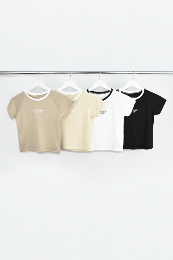 Top Ranglan San Diego combinada. Top ranglan ajustada cuello puño redondo y mangas cortas combinadas – Modal Soft Talle unico – abarca talle M.