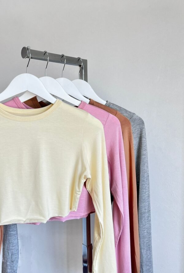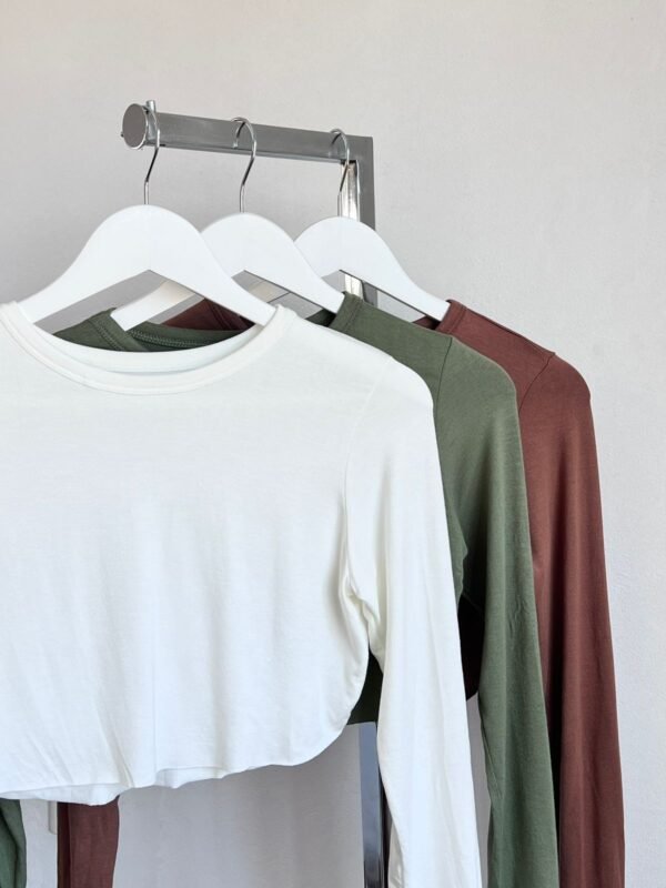 Detalle: Top al corte U con cuello redondo y manga larga.