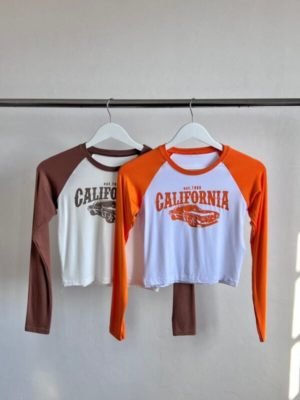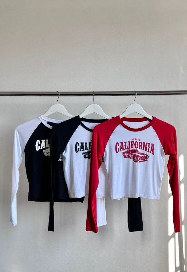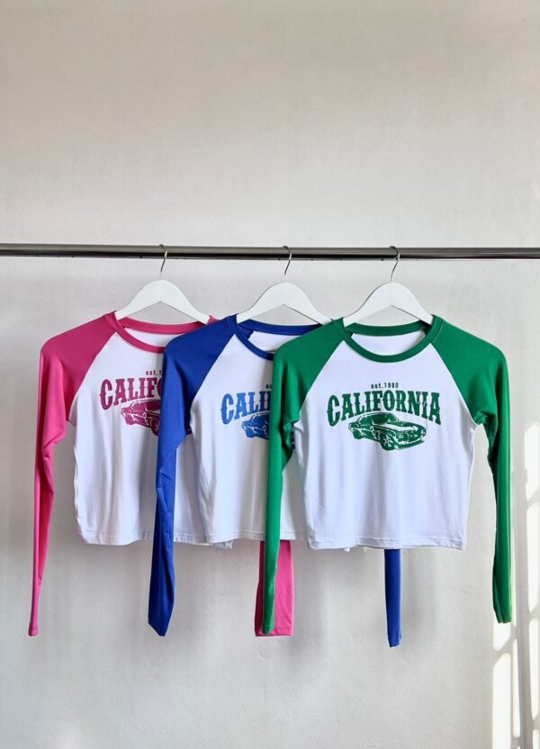 Detalle: Remera ranglan ADJ California. Remera Ranglan ajustada manga larga combinada.