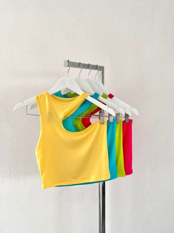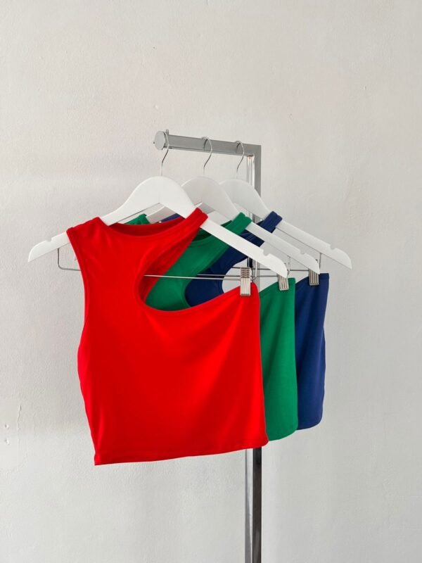 Detalle: Top Zelanda musculosa. Top musculosa asimétrico con sustracción delantero.